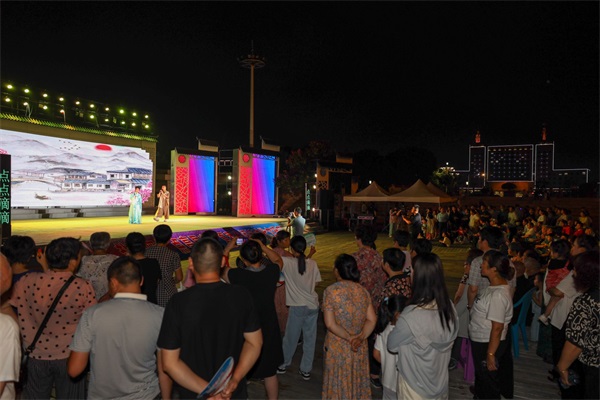 鹽都區(qū)新時代文明實踐主題公園(世紀公園)月亮廣場舞臺前座無虛席熱鬧非凡,不少在公園散步、納涼的群眾紛紛駐足觀看。活動在舞蹈《贊贊新時代》中拉開了序幕,淮歌、情景劇、折子戲等節(jié)目輪番上演,為社區(qū)居民帶來一場精彩的視覺盛宴,演出精彩紛呈、高潮迭起,熱烈的掌聲此起彼伏?;顒蝇F(xiàn)場還播放了短片《文明“鹽”值高 點亮“都”星夜》和《點亮星夜——新時代文明實踐在鹽都》,集中展示全區(qū)“點亮星夜”夏季晚間新時代文明實踐主題活動啟動以來,各地活動開展情況。