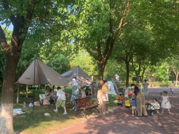 園內游人如織,有的在遛娃、戲水、拍照,有的在群藝館觀摩字畫、參觀非遺展覽,有的在月亮廣場欣賞惠民演出,還有人在星空下拉起幕布觀看電影……優(yōu)美宜人的自然景色與豐富多彩的文化景觀為市民帶來了絕佳的出游體驗。