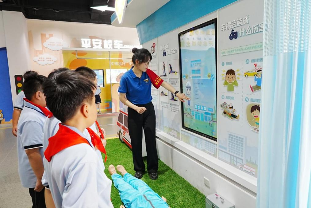 直播鏡頭下,油麻地小學(xué)教室內(nèi)外變成交通安全大舞臺。   教室內(nèi),民警通過通俗易懂的語言和啟發(fā)式教學(xué)引導(dǎo)同學(xué)們在日常生活中遵守交通法規(guī)。教室外,孩子們通過踢毽子、滾鐵環(huán)等趣味游戲輕松掌握交通法規(guī)知識。在交通安全實景體驗館內(nèi),主持人帶領(lǐng)學(xué)生們體驗不同場景下復(fù)雜多變的交通狀況,孩子們坐上基地頂流”“育才號校車,通過校車模擬駕駛艙、VR眼鏡沉浸式感受實景駕駛。