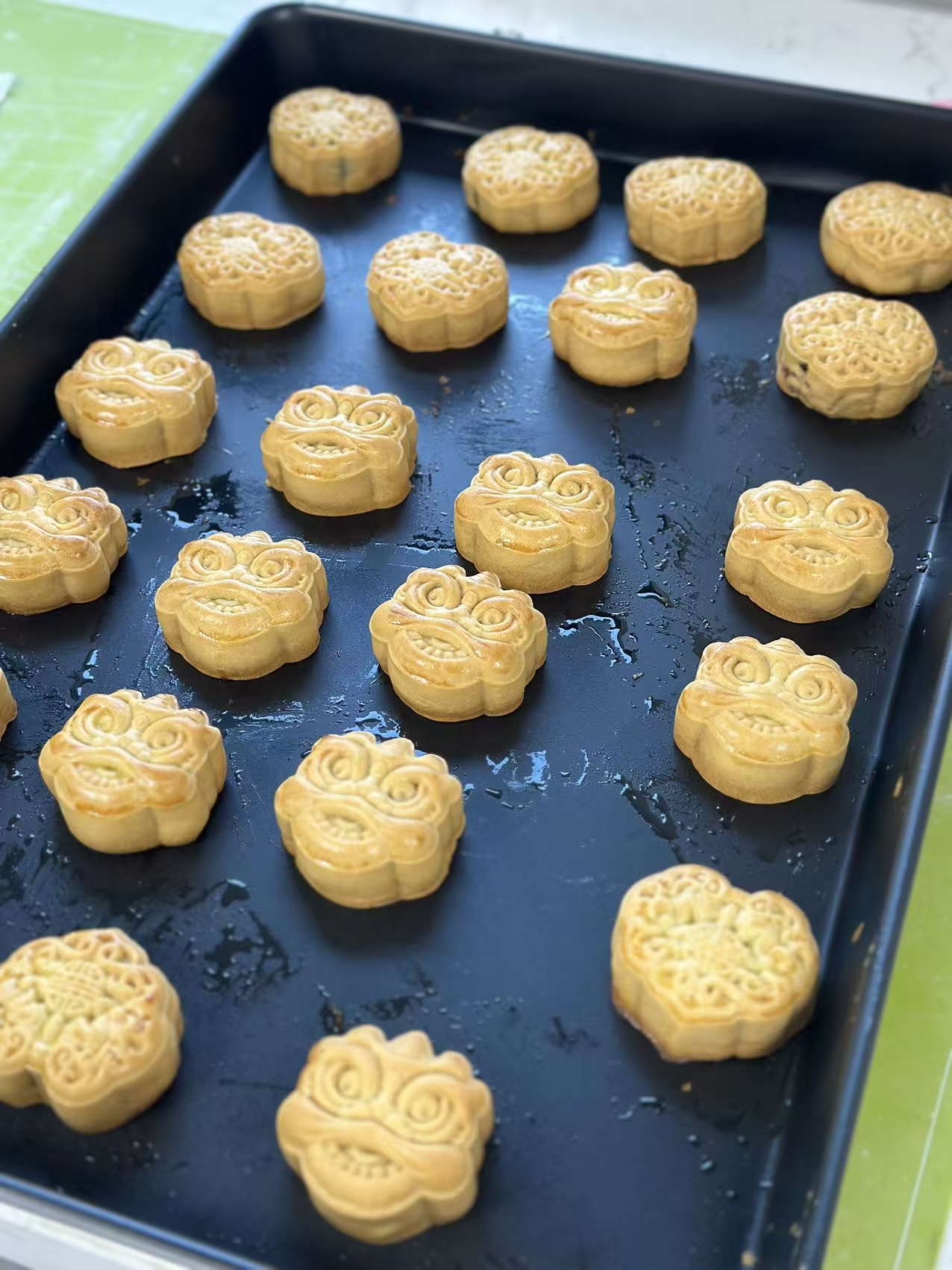 活動現(xiàn)場布置得溫馨雅致,面團(tuán)、餡料、模具等材料早已備好,各處充滿了濃厚的節(jié)日氣息。在面點(diǎn)師傅的指導(dǎo)下,大家興致勃勃地投入到月餅制作中,揉搓面團(tuán)、包入餡料、放入模具……同事們互相交流技巧,分享心得,一個個飽滿可愛的月餅在手中成型。