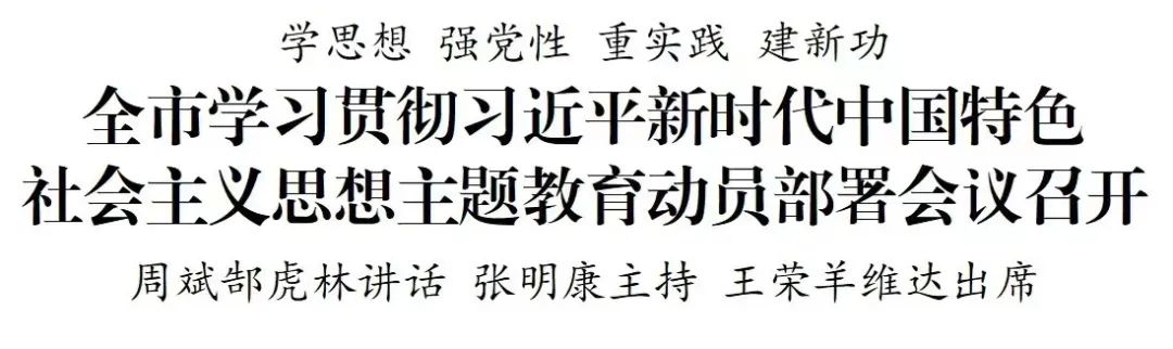 周斌指出,在全黨深入開展學(xué)習(xí)貫徹習(xí)近平新時代中國特色社會主義思想主題教育,是黨中央作出的重大決策,是貫徹落實黨的二十大精神的重大舉措。全市各級黨組織和廣大黨員干部要深入學(xué)習(xí)貫徹習(xí)近平總書記重要講話精神,學(xué)深悟透、對標(biāo)對表,深刻認(rèn)識開展主題教育的重大政治意義、理論意義、實踐意義,自覺把高標(biāo)準(zhǔn)高質(zhì)量開展主題教育作為堅定擁護(hù)“兩個確立”、堅決做到“兩個維護(hù)”的實際行動,作為推進(jìn)中國式現(xiàn)代化走在前做示范的強(qiáng)大動力,作為強(qiáng)化黨性淬煉、解決大黨獨(dú)有難題的重要載體,切實增強(qiáng)看齊追隨的政治自覺、實干爭先的行動自覺、自我革命的時代自覺,把思想和行動統(tǒng)一到中央和省委決策部署上來,以飽滿的政治熱情、強(qiáng)烈的使命擔(dān)當(dāng)、扎實的工作舉措,把主題教育抓出高質(zhì)量好效果。